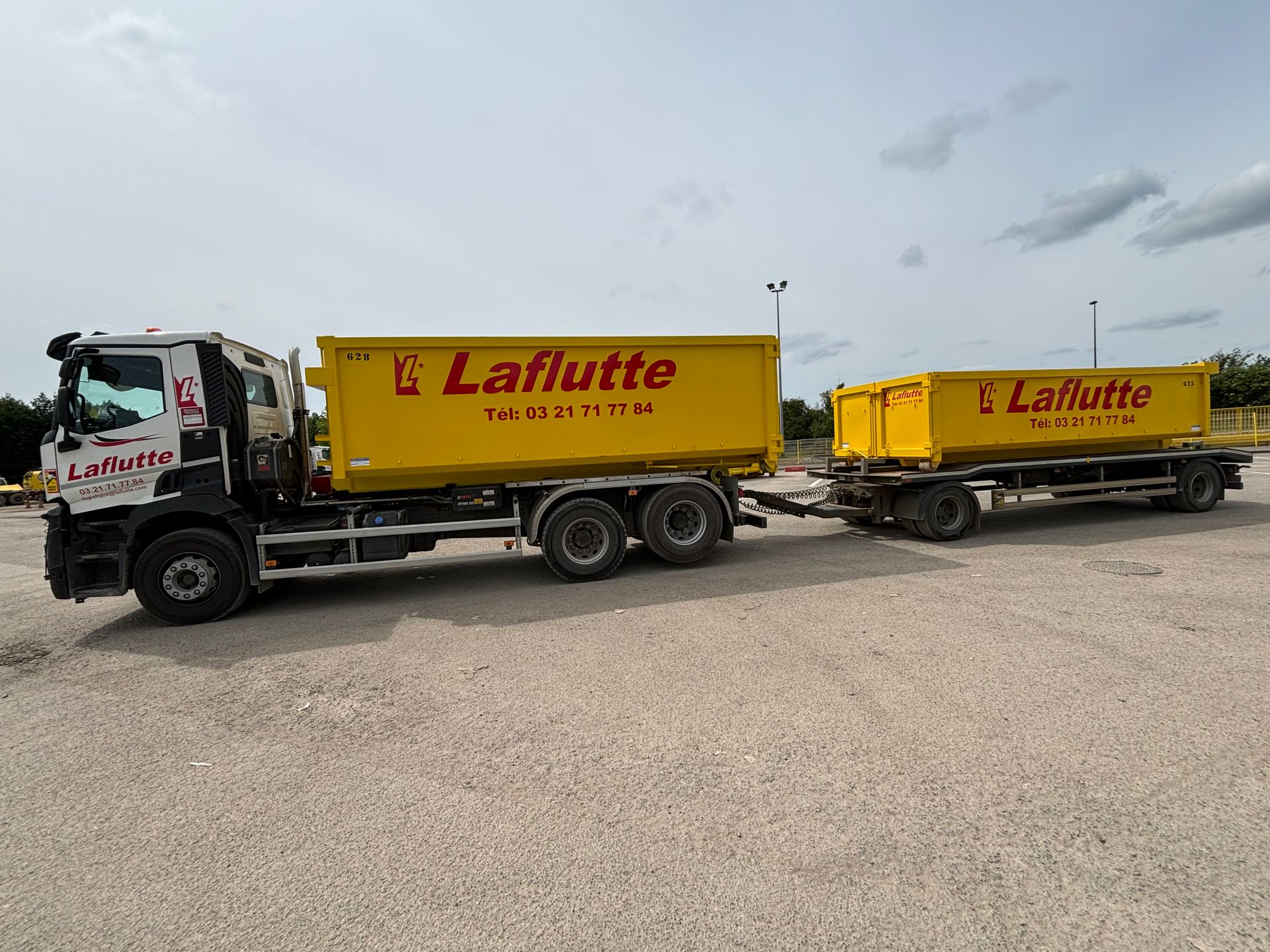 LAFLUTTE à Arras, près de Lens, Douai, Lille et Béthune, c’est aussi la location de bennes, de compacteurs et autres engins de travaux publics avec ou sans chauffeur. Nous livrons le matériel sur les lieux du chantier, et pouvons prendre en charge l’évacuation des déchets vers notre centre de tri.